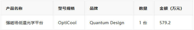 2、強(qiáng)磁場(chǎng)低溫光學(xué)平臺(tái)2025年11月26日強(qiáng)磁場(chǎng)低溫光學(xué)平臺(tái)采購(gòu)項(xiàng)目通過驗(yàn)收,合同金額:579.2萬元。