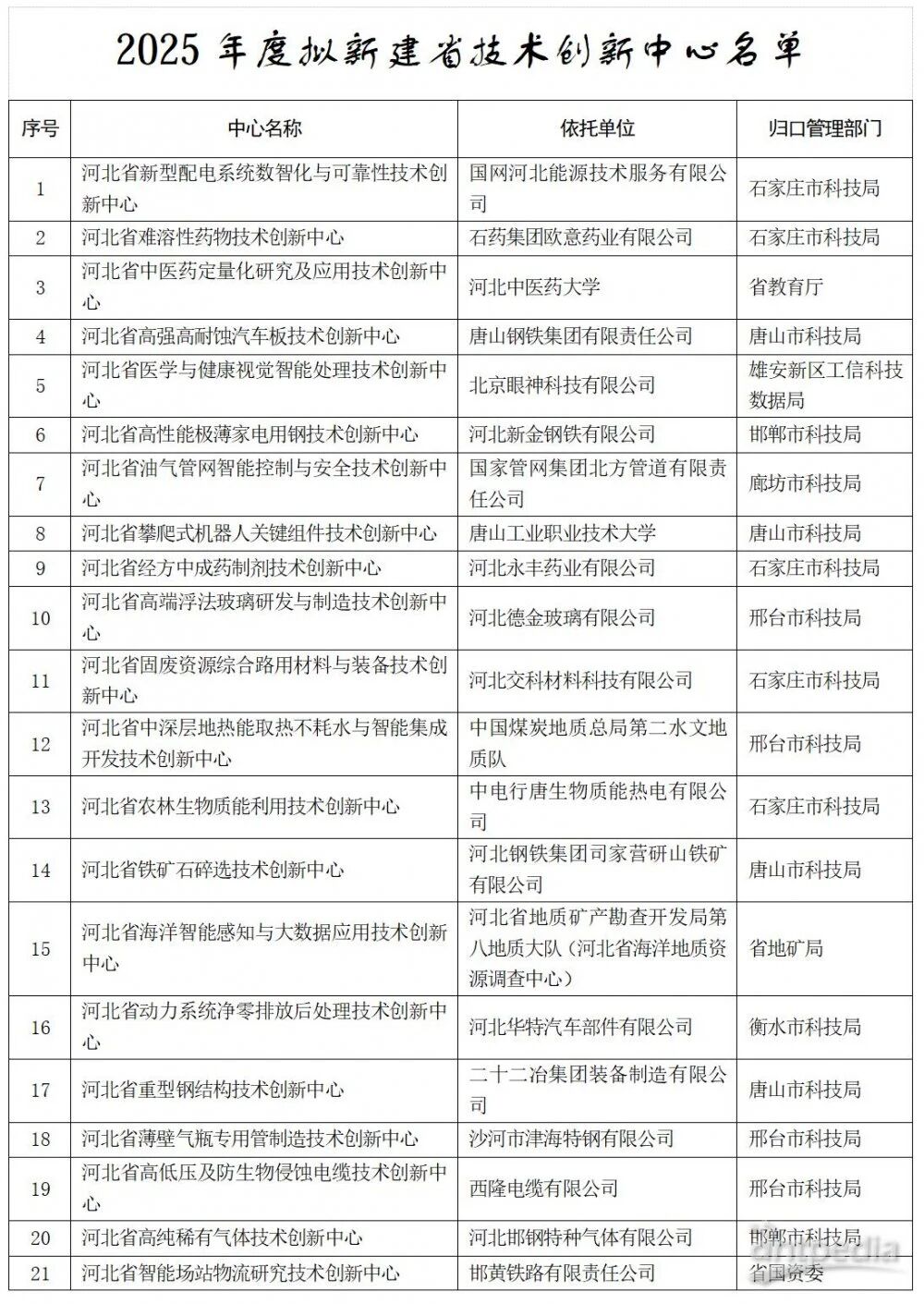 河北省科學(xué)技術(shù)廳關(guān)于2025年度擬新建省重點實驗室和省技術(shù)創(chuàng)新中心的公示