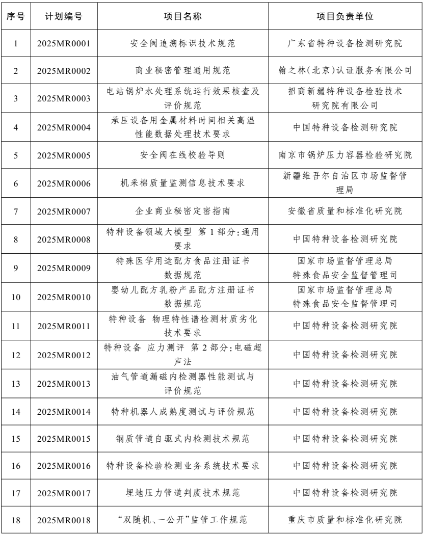 2025年度市場監(jiān)管行業(yè)標(biāo)準(zhǔn)制修訂項(xiàng)目計(jì)劃