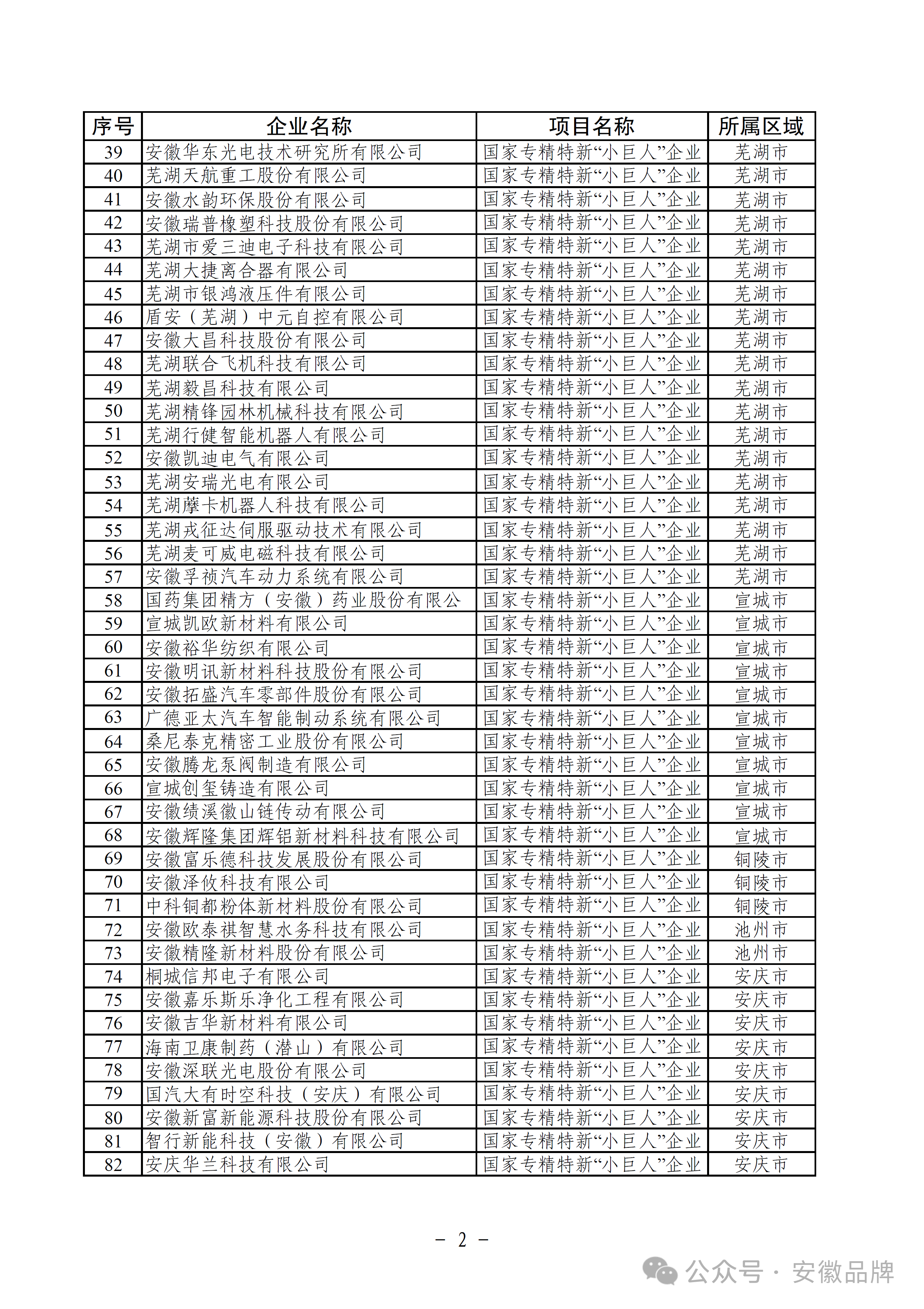 安徽省2025年國家制造業單項冠軍企業、專精特新“