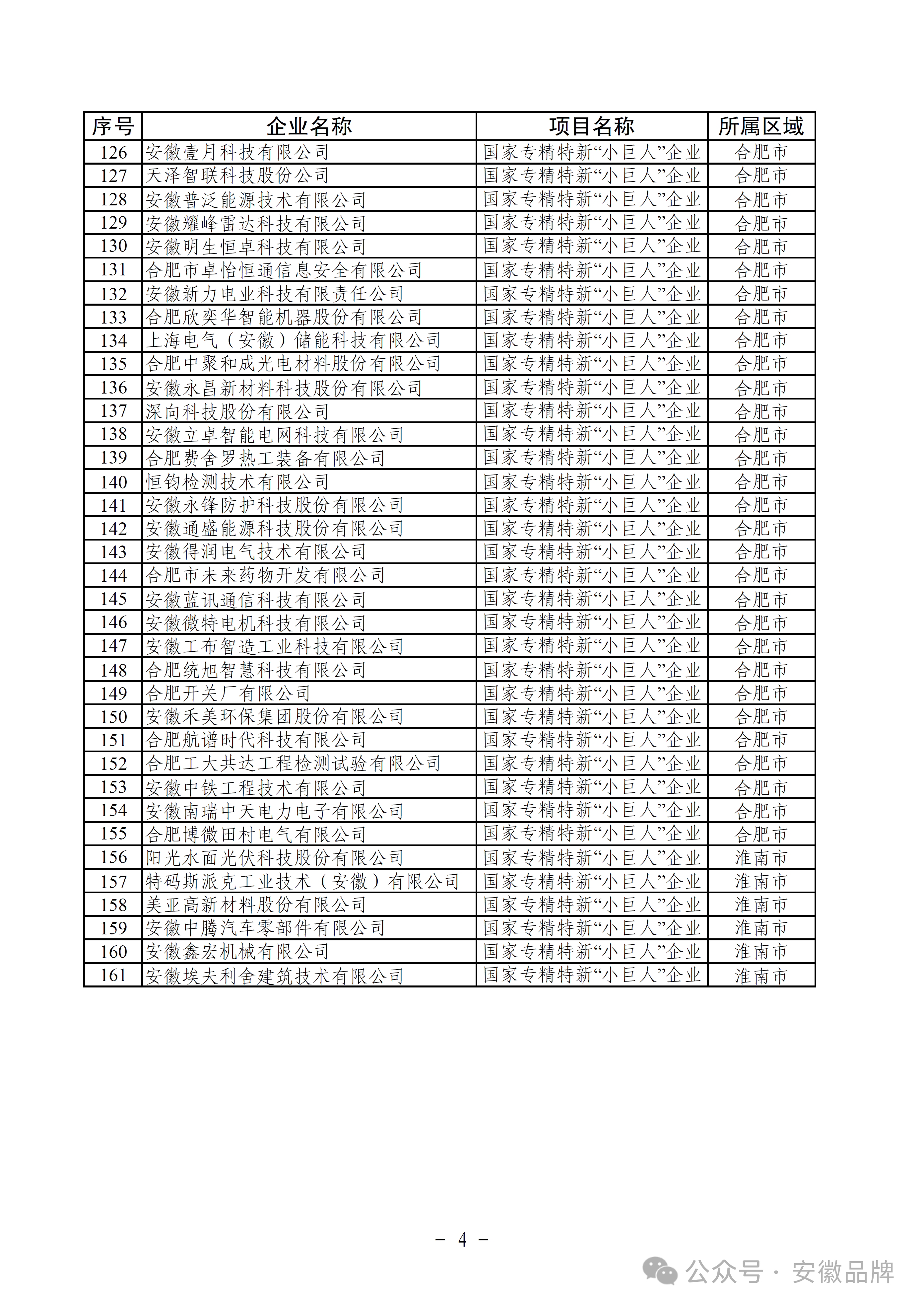 安徽省工業和信息化廳2025年國家制造業單項冠軍企業、專精特新“小巨人”企業擬支持資金項目公示