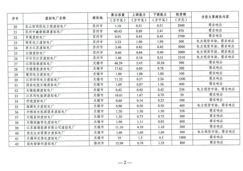 江蘇省首批建100個(gè)虛擬電廠項(xiàng)目,總聚合容量達(dá)16.98GW,上調(diào)能力2.75GW,下調(diào)能力3.17GW,涉及總投資額12.73億元;主要建設(shè)內(nèi)容為電力現(xiàn)貨市場(chǎng)及需求響應(yīng)。