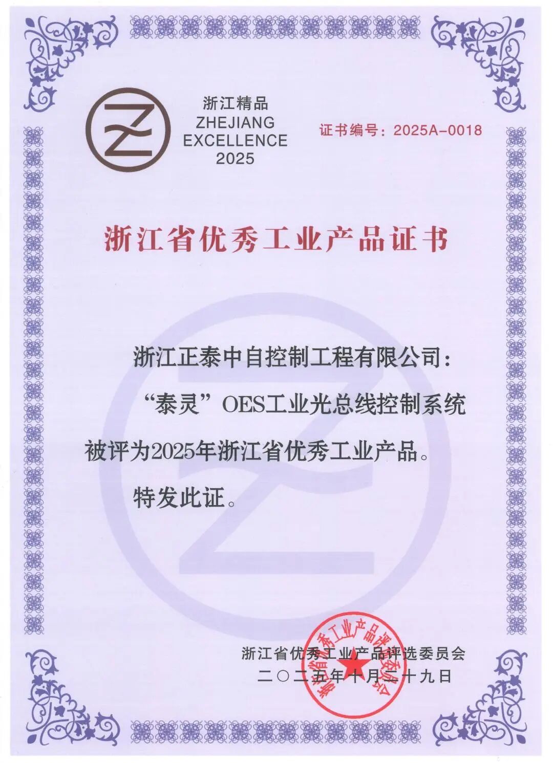 近日,浙江省優秀工業產品評選委員會公布2025年浙江省優秀工業產品名單,浙江正泰中自控制工程有限公司"泰靈"OES工業光總線控制系統憑借優異的產品力從參加評審的產品中脫穎而出,成功入選2025 年浙江省優秀工業產品名單,成為浙江優質工業的代言產品。